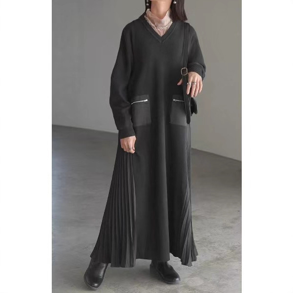 2023春夏の新型欧米国境を越えた女装アマゾンの人気カジュアルvネックポケットのワンピース女性