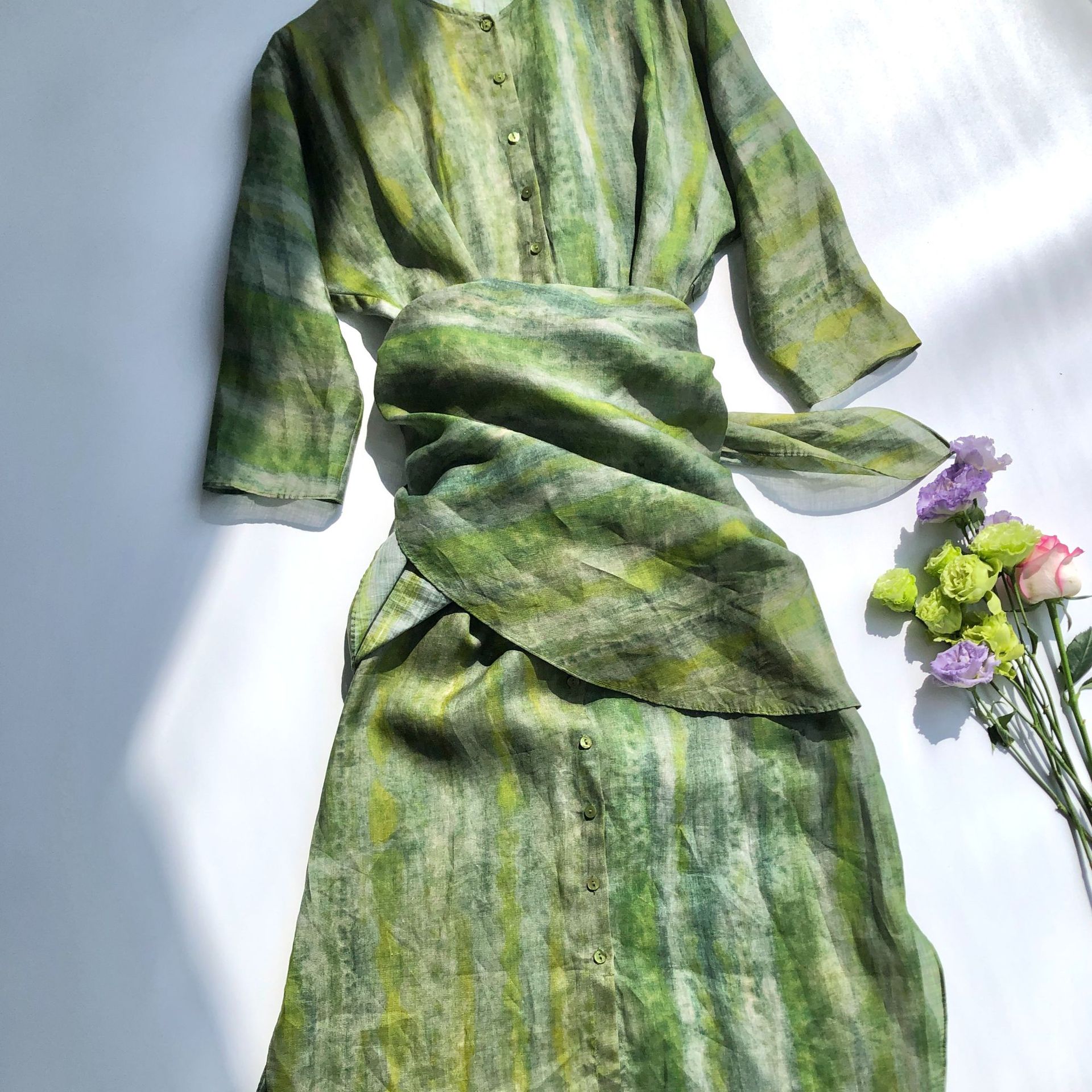 クロスボーダー Amazon ヨーロッパとアメリカのクロスボーダー 3D デジタルプリント V ネック 5 分袖ロングパッチポケットカフタンロングスカート