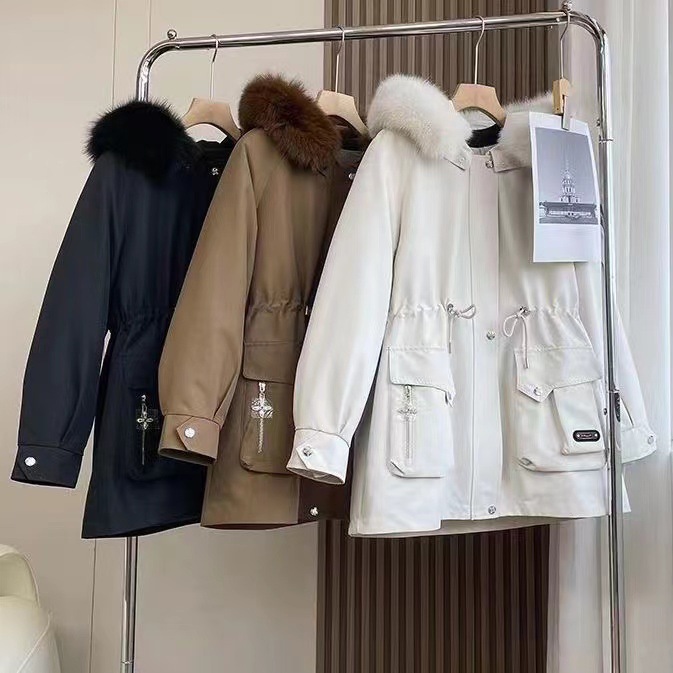 深セン南油高級冬気質長袖白ガチョウ毛四口袋腰ダウンジャケット女