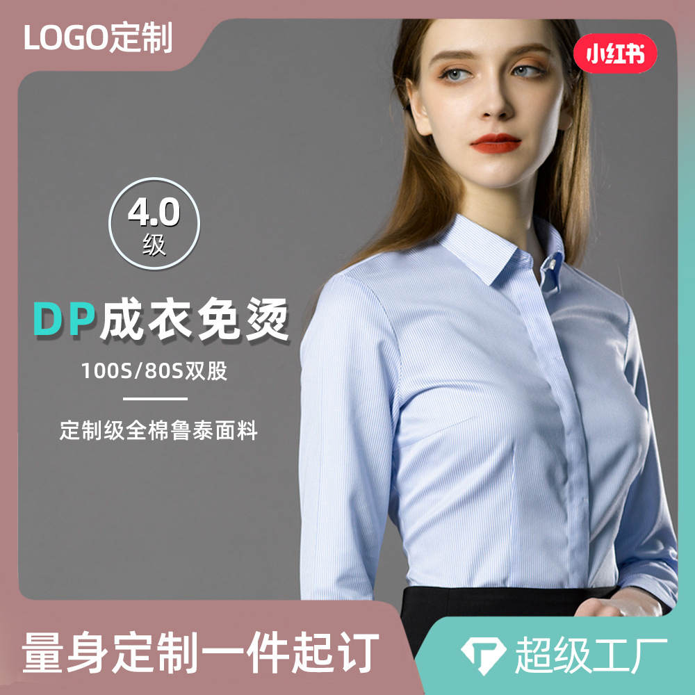 2025 春の新作レディースシャツ竹繊維長袖レディースシャツノンアイロンプロフェッショナルウェア刺繍ロゴ白シャツ