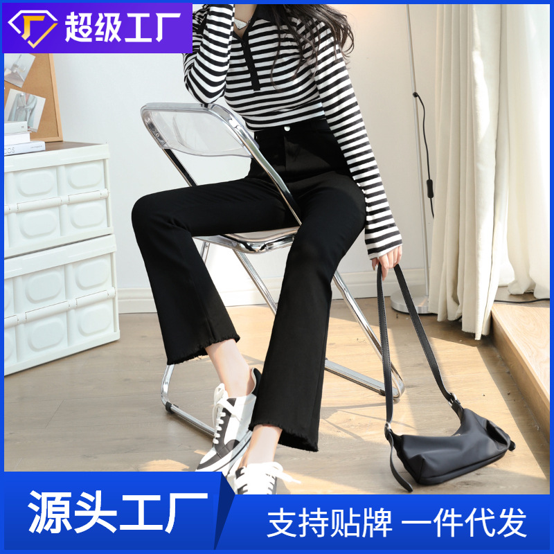 アマゾン欧米2025新作レディース気質アップ多ボタンスリムウォッシュ加工ダメージフレアデニムパンツ
