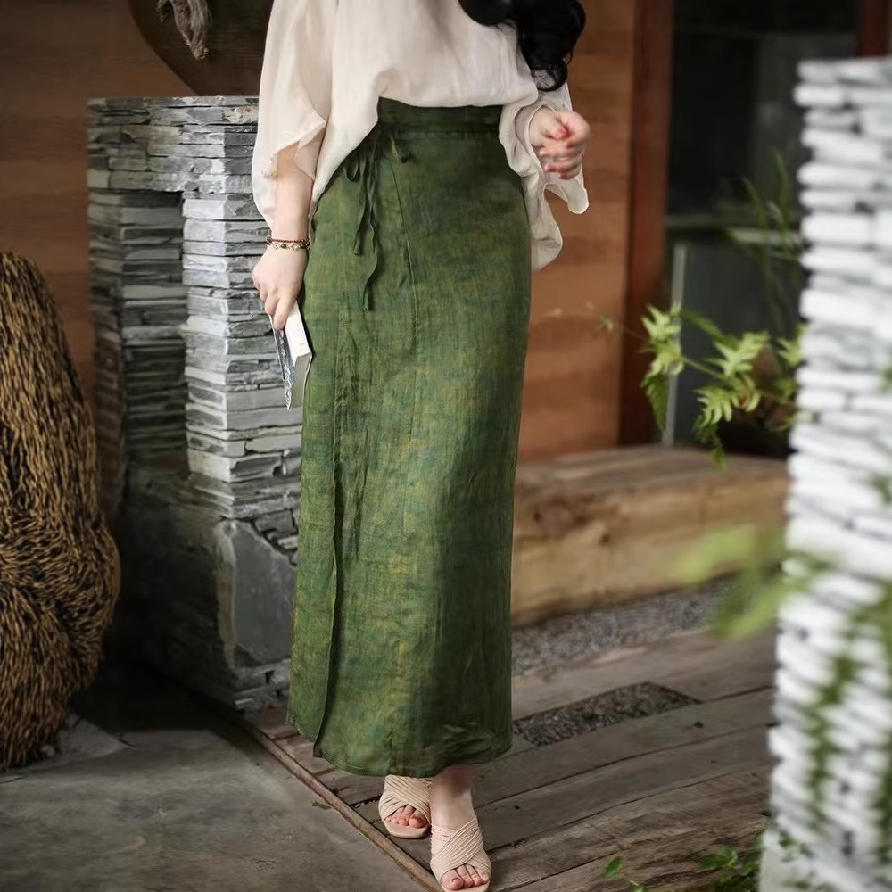 Liang Yixuan 2025 新しい夏スタイルラミーテンセルレトロプリントワンピースラップスカート A ラインヒップカバースカート女性のトレンディな
