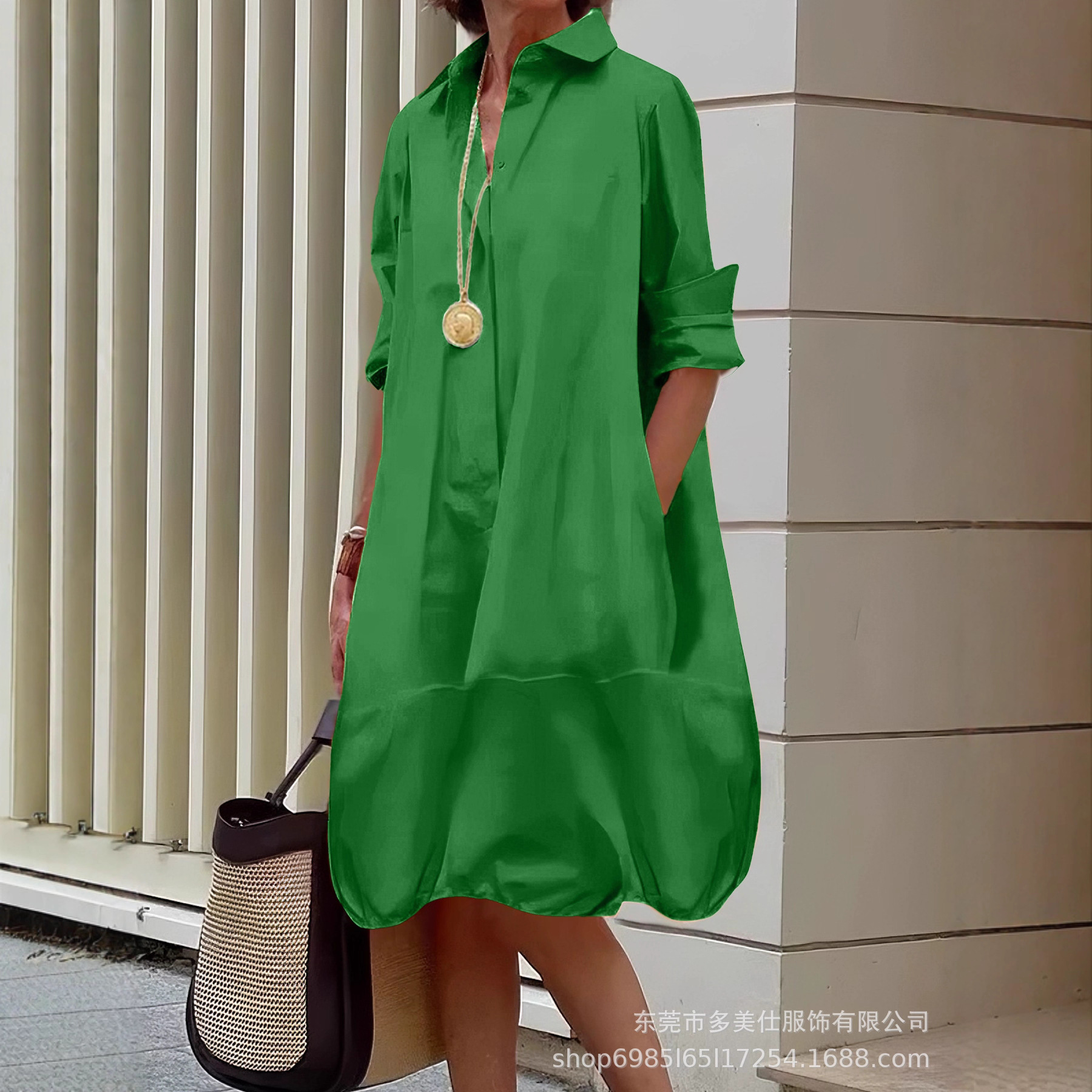 2025年ヨーロッパとアメリカの新しいスタイルのロングシャツ無地通勤シンプルラペルカーディガンドレス
