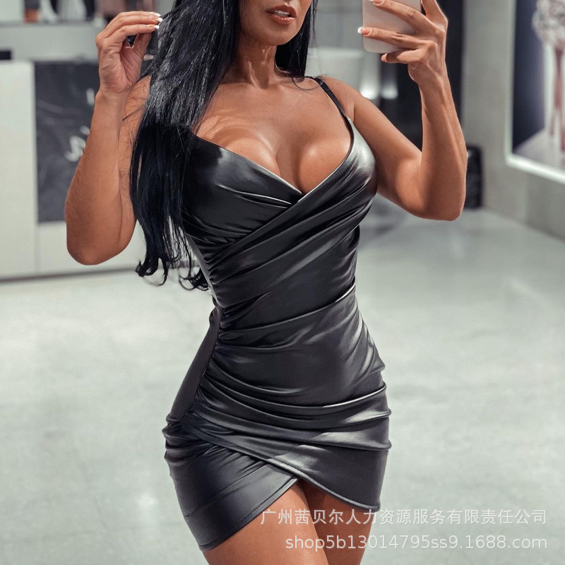 2023欧米の新型の黒色はしわをつかんでタイトなガーターの皮のスカートを包みます。