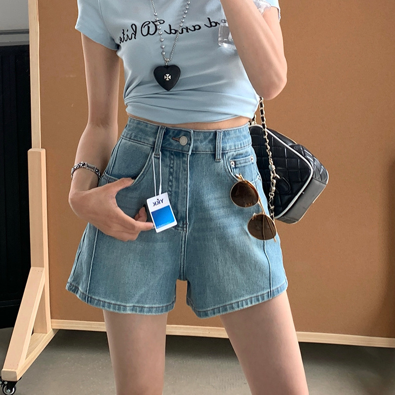 OEM カスタマイズされた四面ストレッチレトロブルーデニムショートパンツ夏の新しいファッション多用途ハイウエストスリムホットガールショーツ女性用