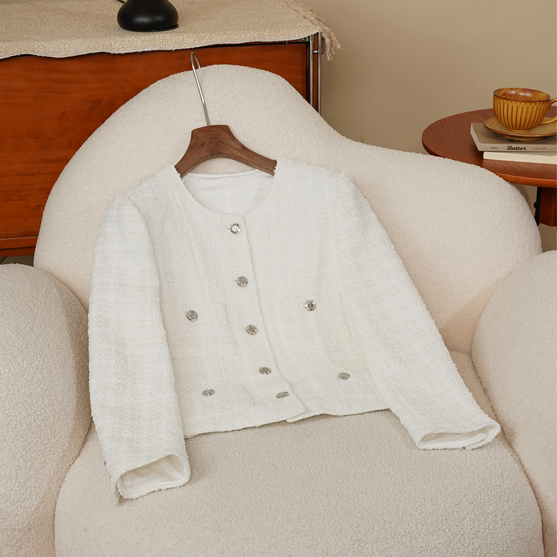 アンフェオナ 春秋 フレンチクラシック風 ティファニー風 チノ生地 ラウンドネック 4ポケット付き レディースジャケット エレガント