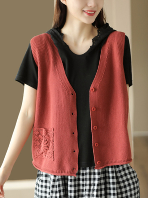 レトロな綿の糸のメリヤスの女性の文芸のフックの花の袋の袖なしの外はカーディガンの馬を掛けて上着を挟みます。
