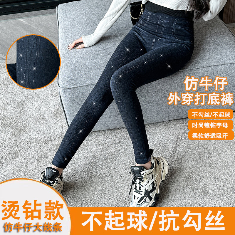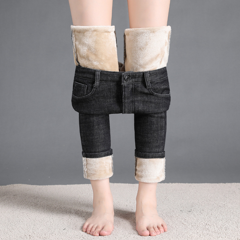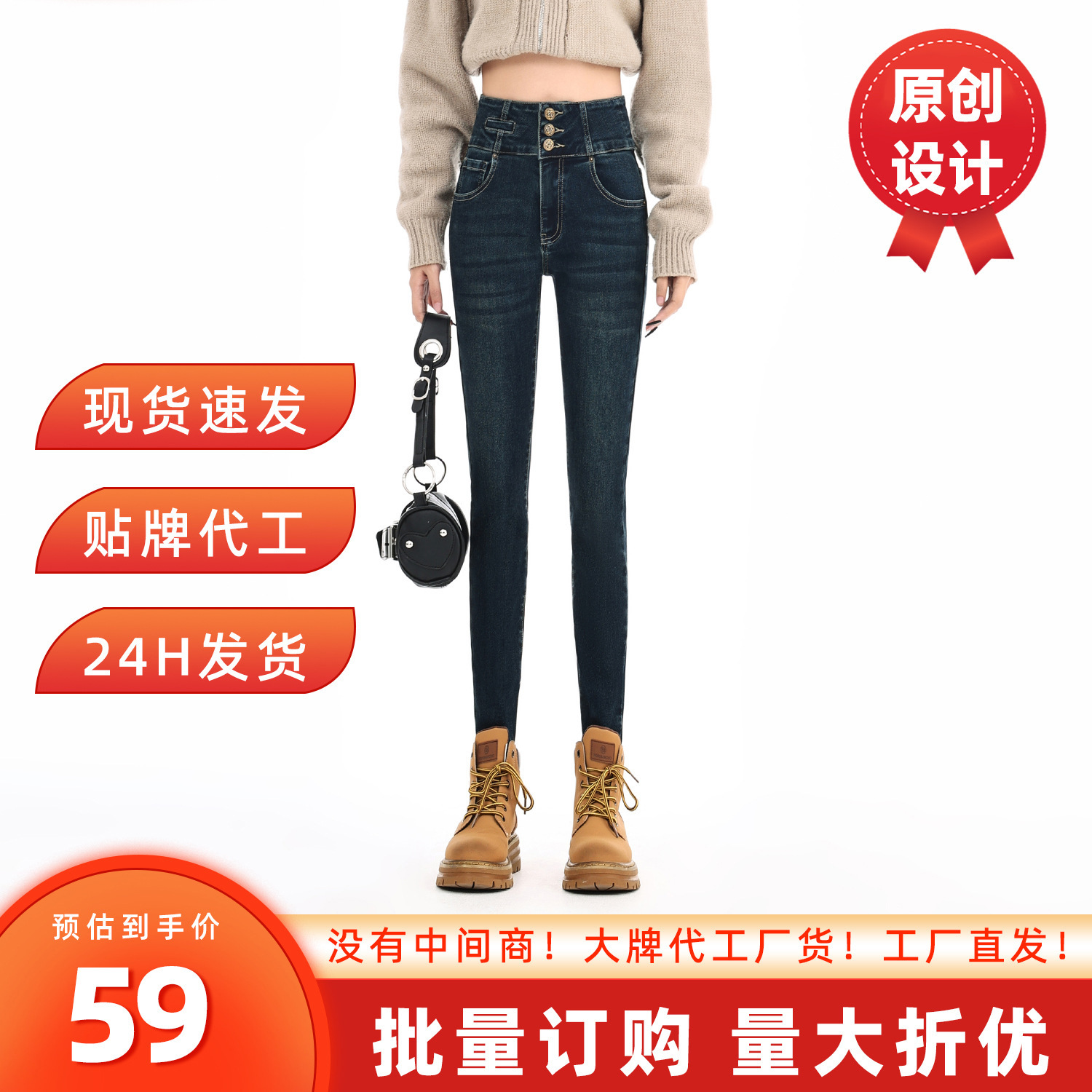 ベルベットのジーンズの女性は腰を高くして小さな足のズボンを厚くして、2023冬の新しい保温はガードルの鉛筆のズボンを卸売りします