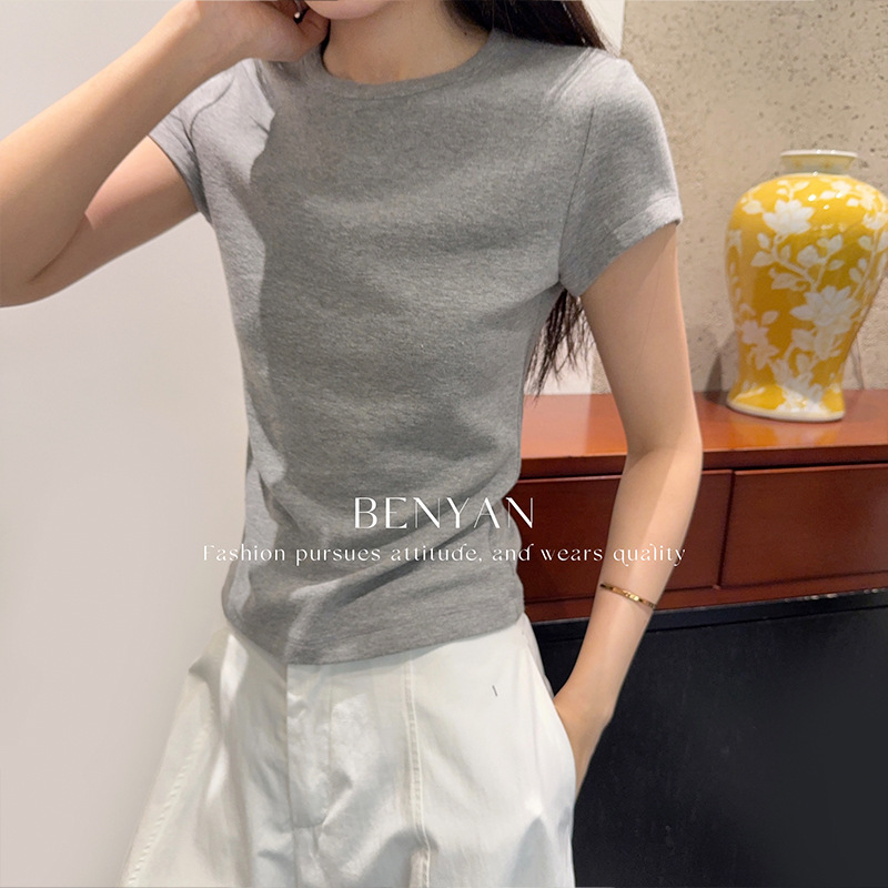 BENYAN ベニヤン 2025夏新作 右肩小丸ネックボトリングシャツ ベーシック半袖Tシャツ 82263