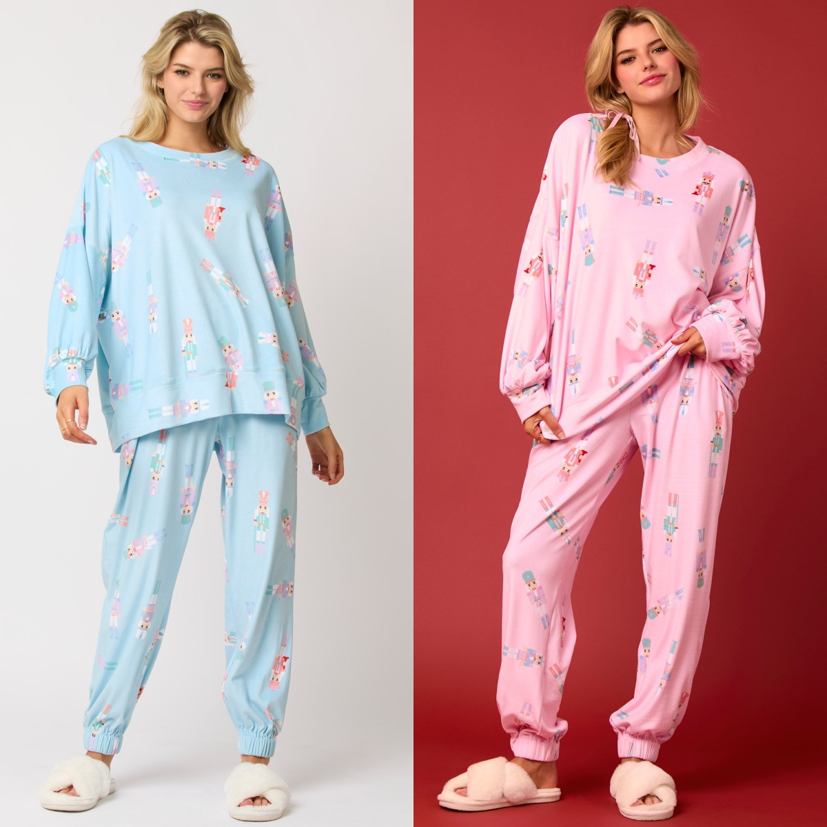 アマゾン独立駅秋冬新型越境欧米女装クリスマスくるみ割り人形プリントパジャマ2点セット