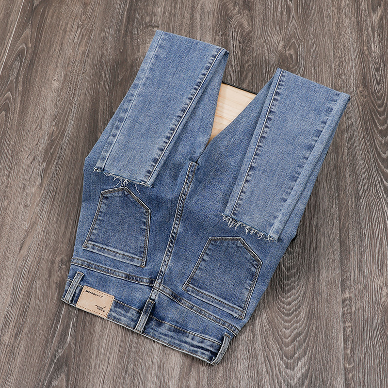 レトロな足のジーパンの女性は2024年秋に腰が高くてやせている鉛筆のズボンのデザイン感があります。