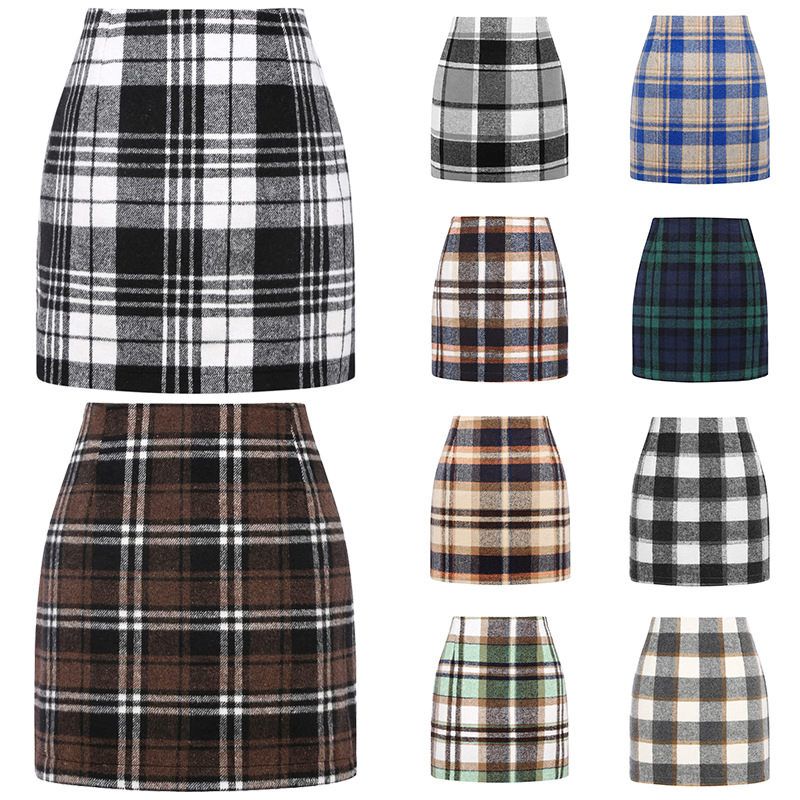 2025 Amazon AliExpress クロスボーダー婦人服ホット販売女性のハイウエストチェック柄スカートタイトなペンシルヒップカバーショートスカート