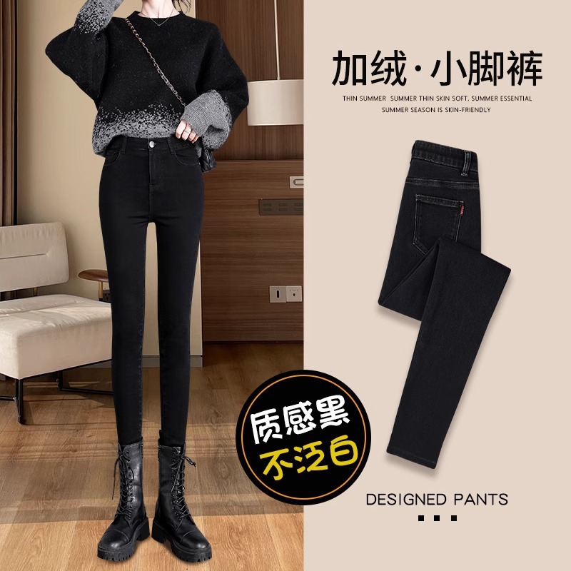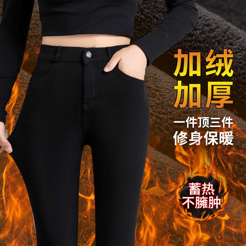 薄いベルベットのレギンスジーンズ女性の冬 2025 新しいハイウエストプラスベルベット暖かい黒鉛筆ストレッチタイトパンツ