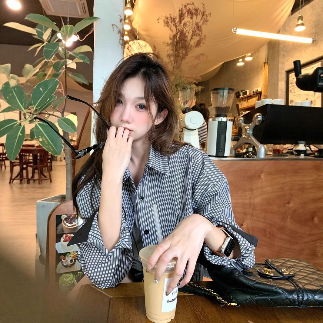秋の女性のための縦縞シャツジャケット新しいデザインニッチルーズシャツ韓国スタイルのレトロな長袖トップ