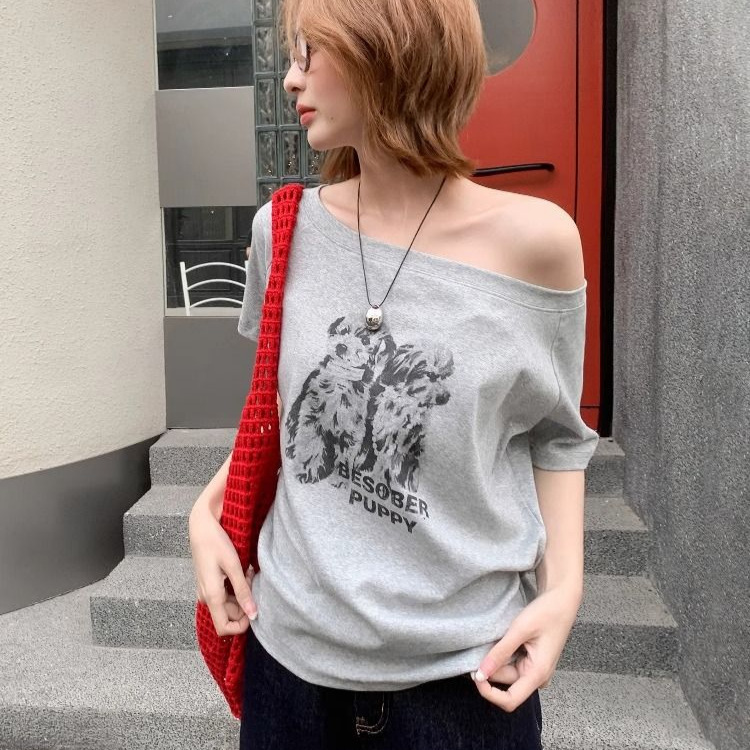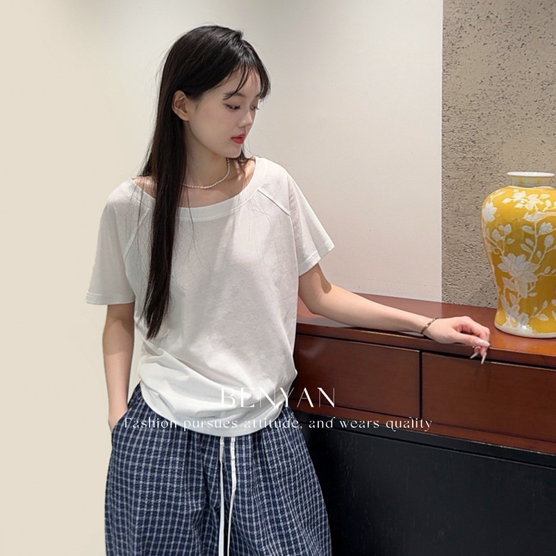 BENYAN ベニヤン 2025 夏新作 オフショルダーデザイン ニッチ半袖 レディース カジュアル シンプル Tシャツ 82260