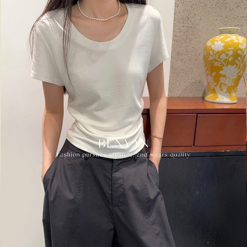 BENYAN ベニヤン 2025 夏新作 カジュアル 万能 プリーツ ラウンドネック トップス Tシャツ 82262