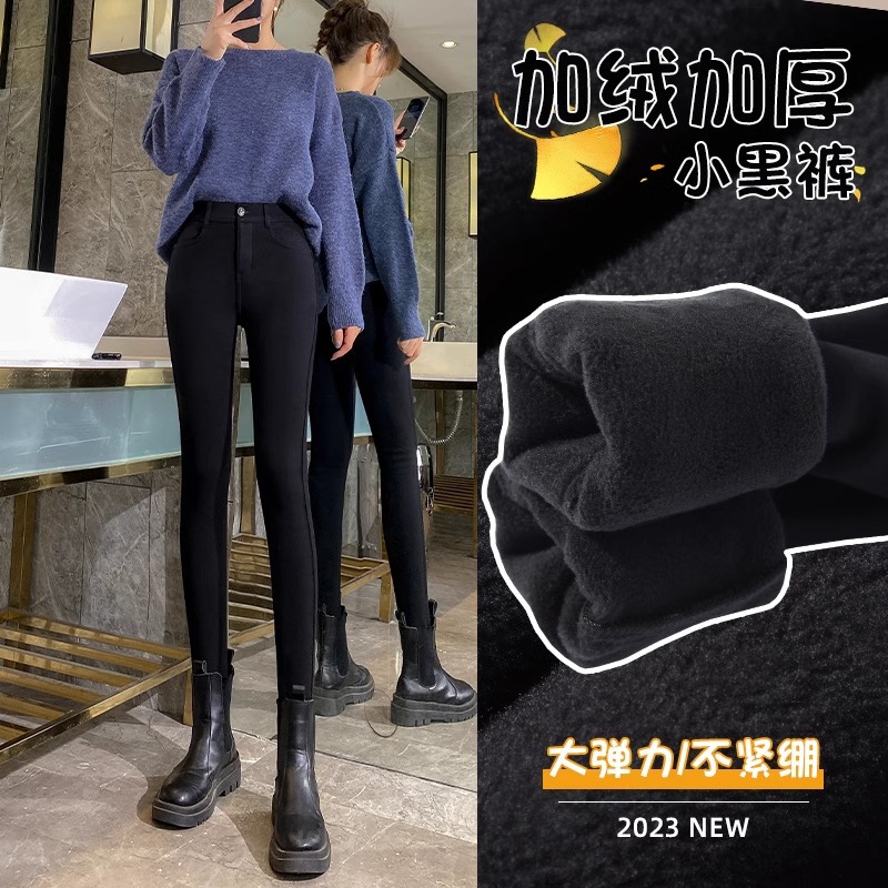 ベルベットのレギンスの女性は秋冬2023の新しい保温高腰で痩せた鉛筆の黒い足のズボンを着ている