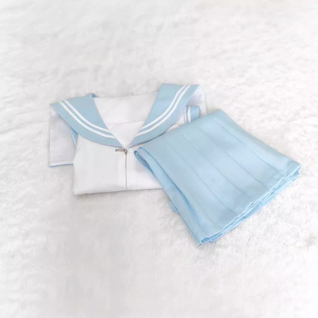 【水色二本】逸品 _ _/TR基礎モデル関東襟セーラー服半袖水色