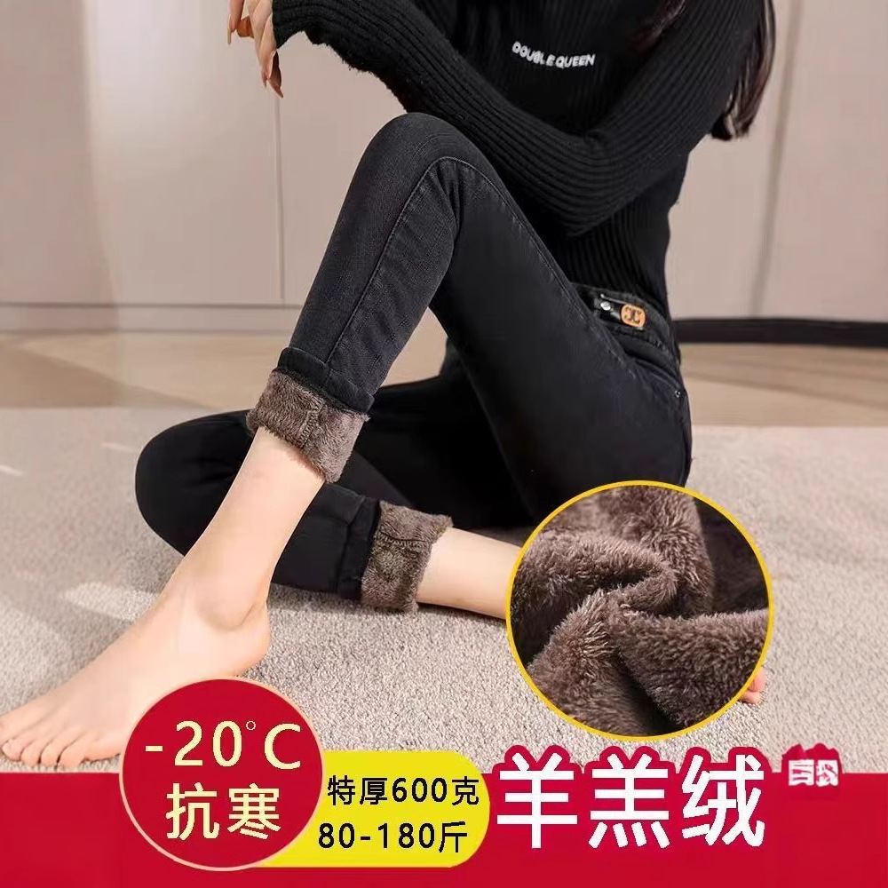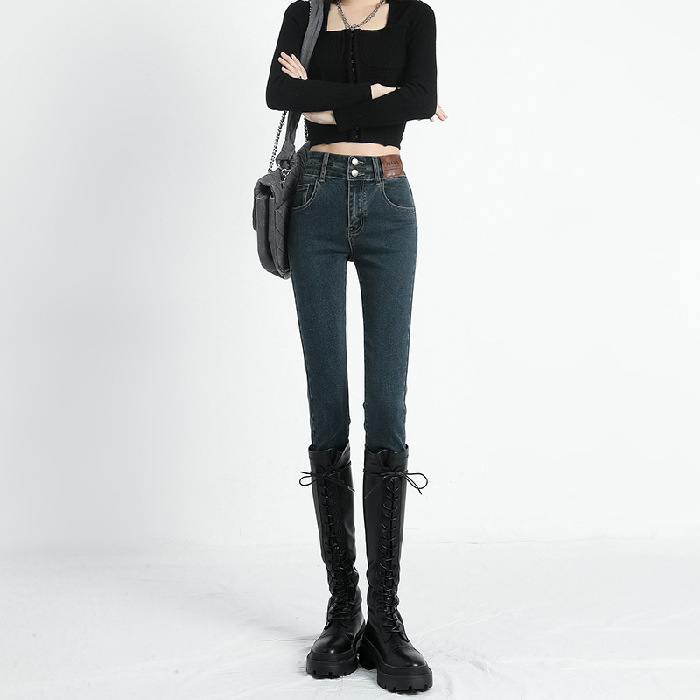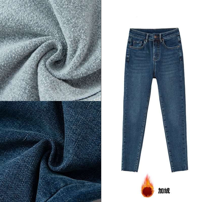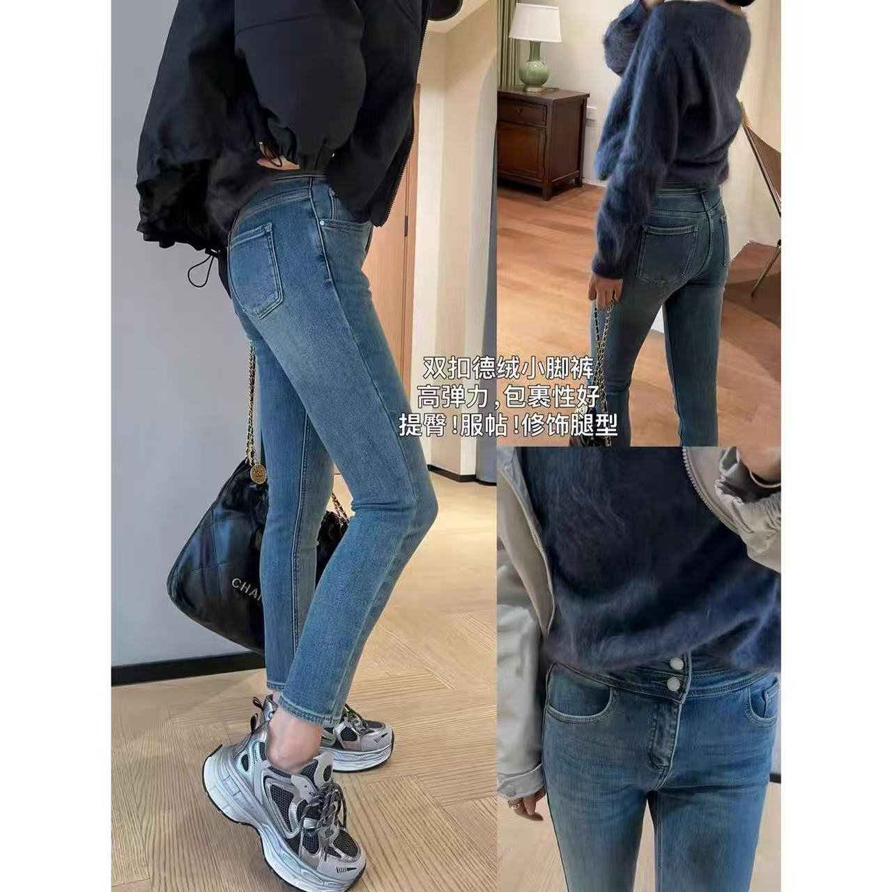 ベルベットは腰を厚くして小足ジーンズの女性2023年秋冬の新型修身が痩せている保温鉛筆ズボン