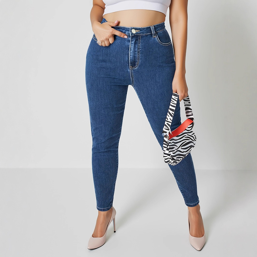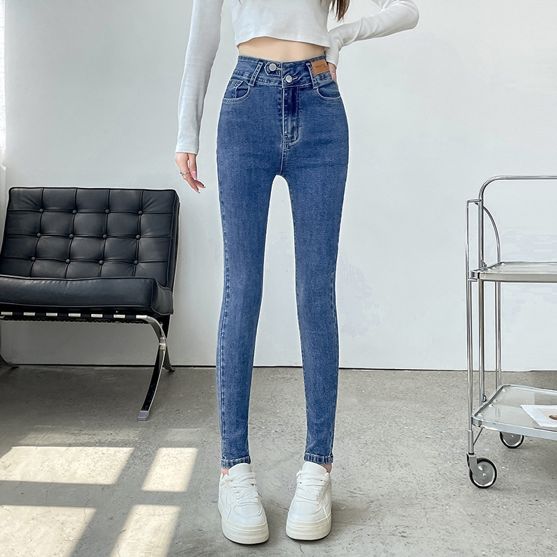 2023秋冬の新型高腰弾力ジーンズの女性はやせています。