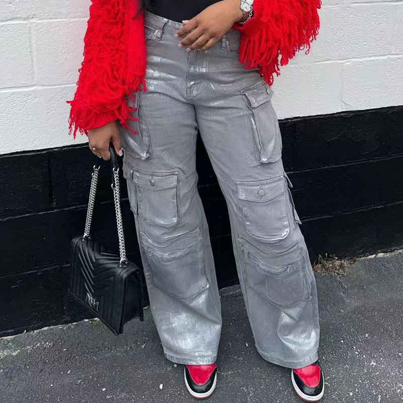 Amazon独立系ウィッシュレディース秋冬売れ筋ファッションワークウェアマルチペンバッグホットシルバージーンズパンツドロップシッピング