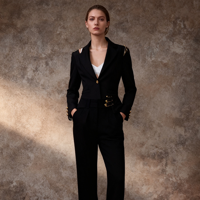 欧米風通勤スタイル 2025年秋新作 おしゃれVネックピンデザインスリムフィットスーツジャケット