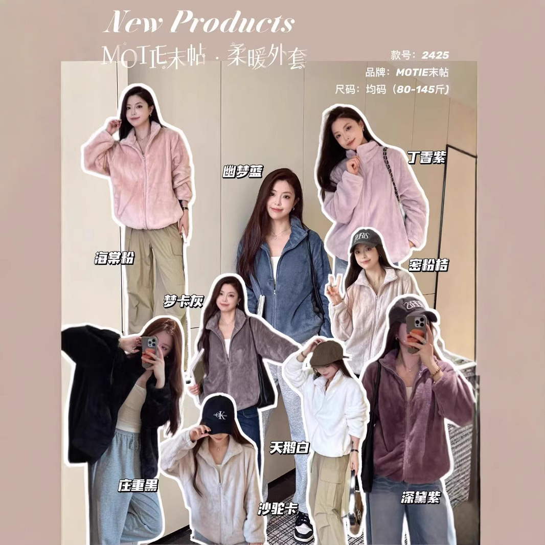 2024年クロスボーダー新型秋冬パイルカーディガン襟付きショートコート