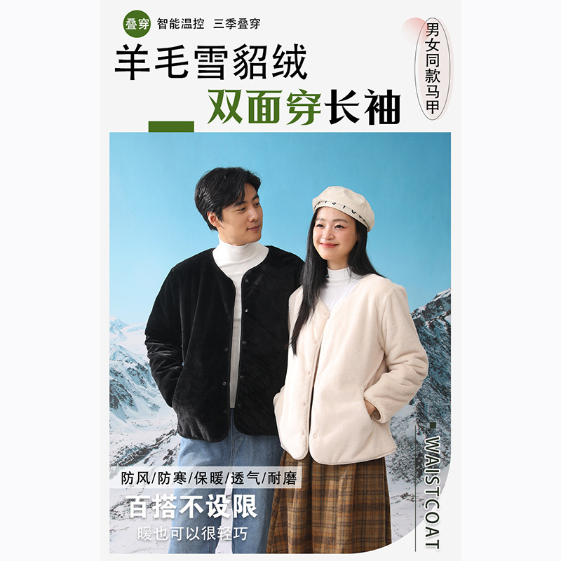 [男女同金] 冬のミンクウール長袖コート軽薄蓄熱両面には底付き保温服356を着ている