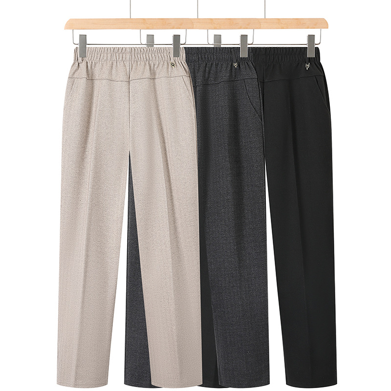 お母さんのズボンの子供の春と秋の高腰の中でお年寄りの50歳のストレートの大きいサイズのズボンのお年寄りのゆったりしているおばあさんはズボンを詰めます。