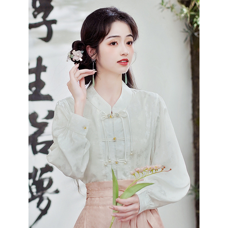 洛竹竹影明制漢服女性用織金花馬面スカート飛袖セット改良旗袍日常秋服