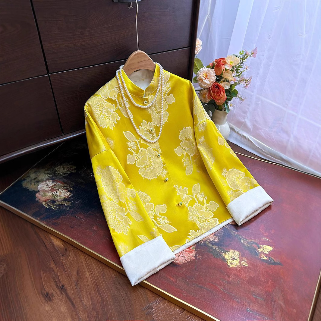 2025年楊冪同タイプのコート春の新中国式ジャカード国風の両面は気質がゆったりしていて、やせている上着を着ています。