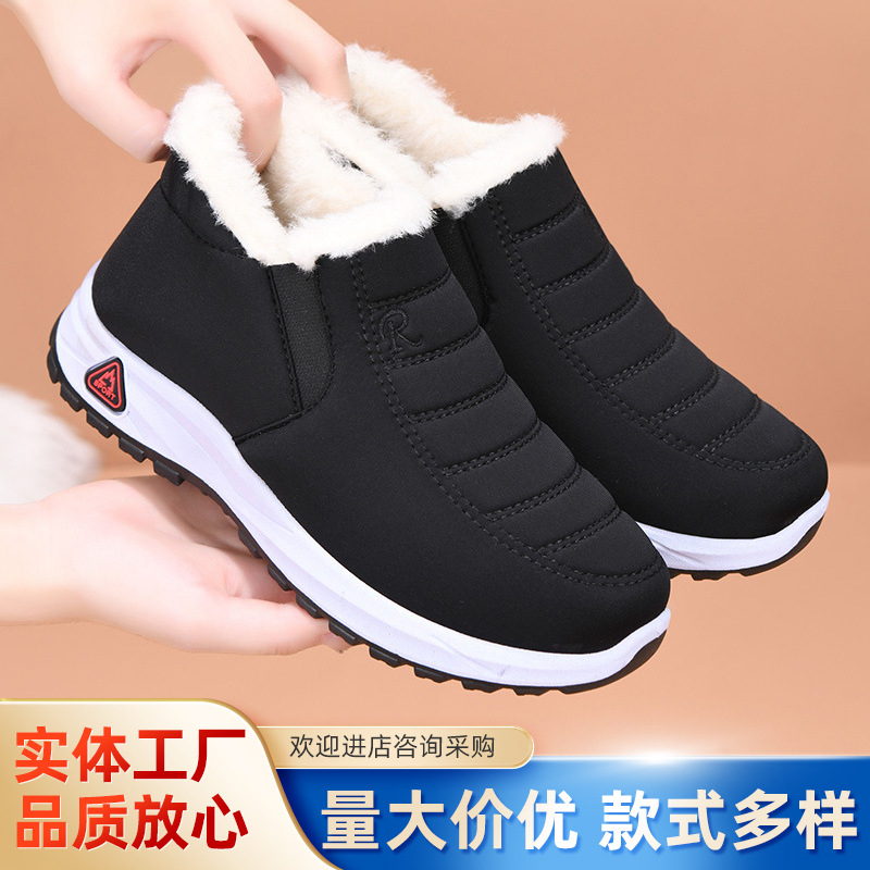 クロスボーダー大きいサイズの綿靴 TEMU 冬人気のスリッポンプラスベルベット厚みのあるスノーブーツ防水外国貿易ファッション綿ブーツ