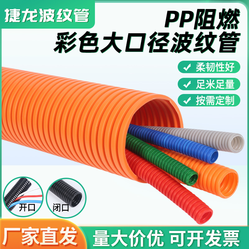 PP難燃カラー大口径ベローズ防水糸通しホース開口可能ケーブル電線保護スリーブ