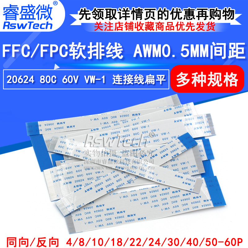 Ffc/fpcコードケーブルフラット0.5mmピッチ4p 6p 20p 30p 60p同方向逆方向