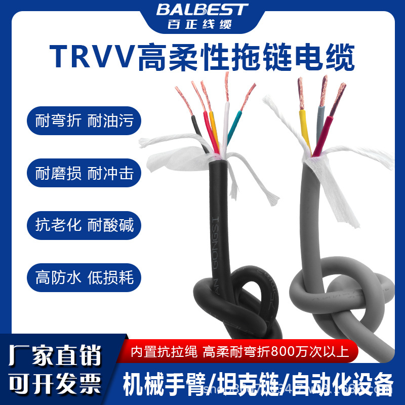 百正trvv高フレキシブルチェーン線2/3/5芯0.3/0.5平方耐曲げタンクチェーンロボット線