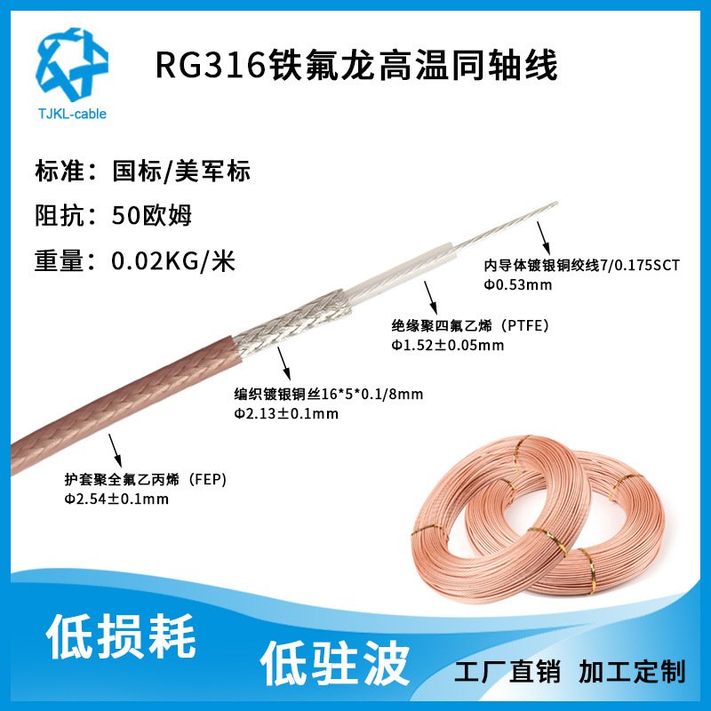 Rg316無線周波数同軸ケーブル耐高温銀メッキ銅高周波信号アンテナフィーダ低損失工場直販