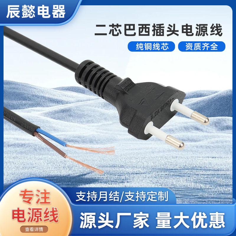 2芯ブラジルプラグ電源コード 2プラグブラックベアテールコード ブラジル標準電気製品電源コード