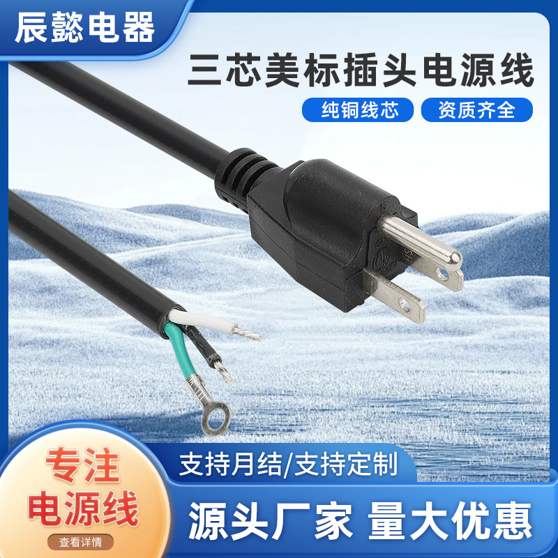 メーカーはアメリカ標準プラグ電源コード、3芯アメリカンプラグコード、2フラット1ラウンド黒色純銅裸尾線を供給しています。