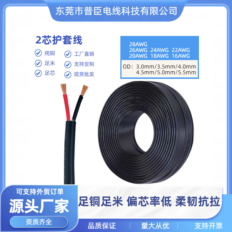 卸売黒 2 芯オーバーパウダーライン 2 芯電源コード 2 芯シースライン 2464/16/18/22AWG/20/26