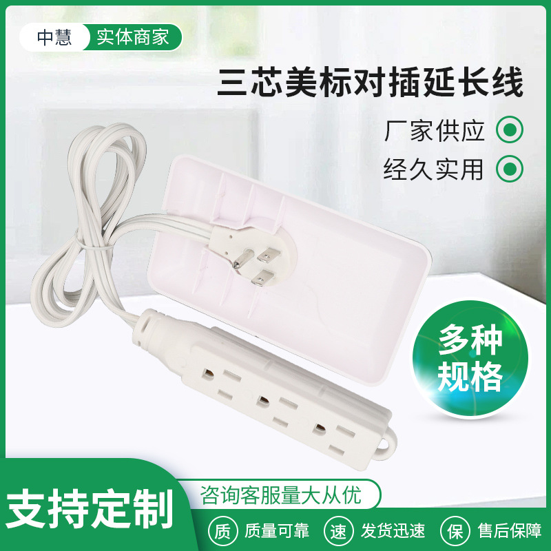 3芯アメリカンスタンダードプラグ延長コード、太い銅芯、3芯アメリカンソケット、純銅白3ソケット延長