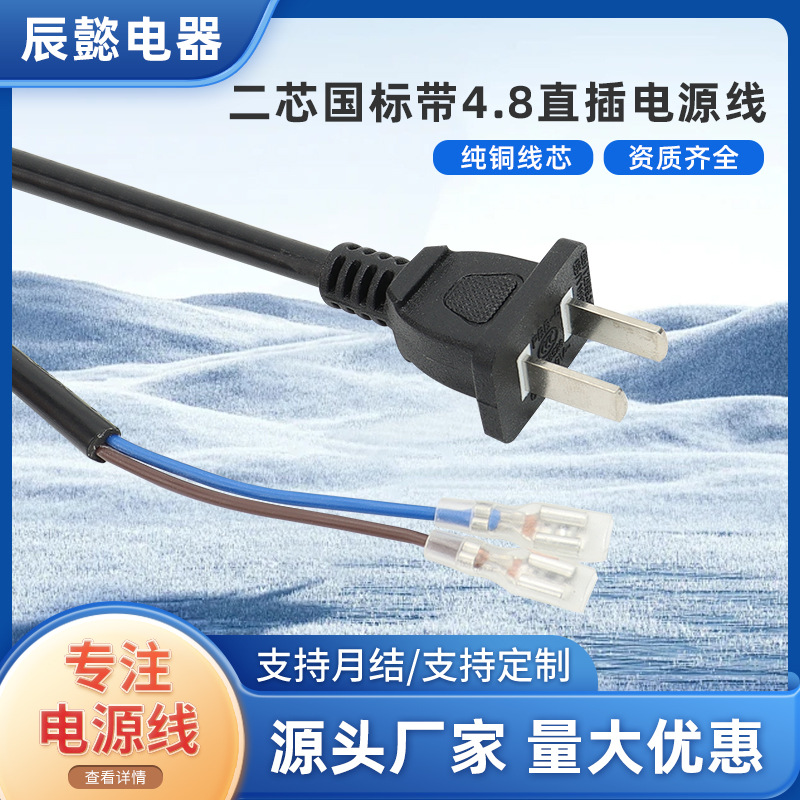 2芯国家標準4.8インライン電源コード付き電気製品電源コード2プラグ黒電源コード