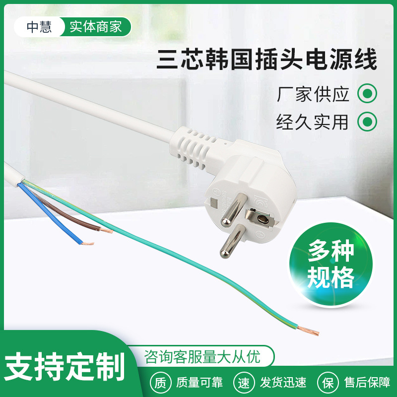 カスタマイズされた 3 芯韓国プラグ電源コード 3 芯韓国標準プラグコード白裸テールコード電源コード