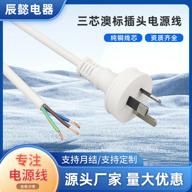 3芯オーストラリア規格プラグ電源コードPVC素材純銅線芯