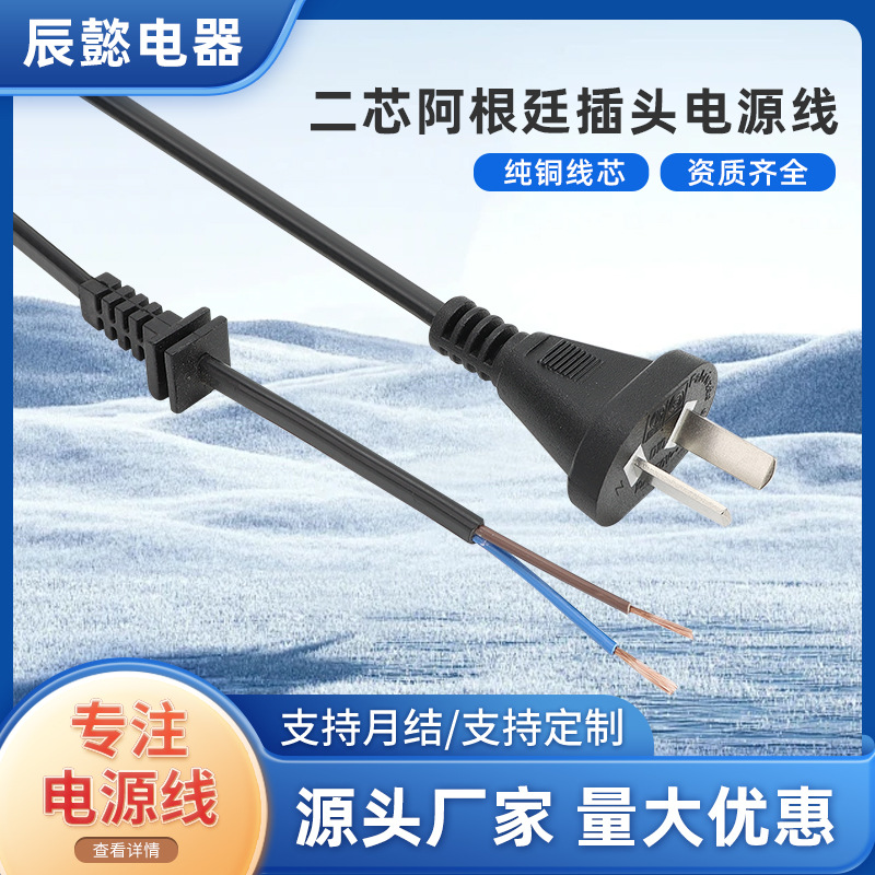 2芯アルゼンチンプラグ電源コード、裸尾線付き8字プラグ電源コード、黒平プラグ電源コード