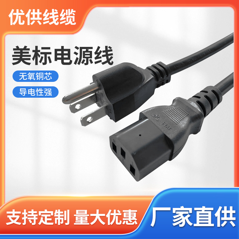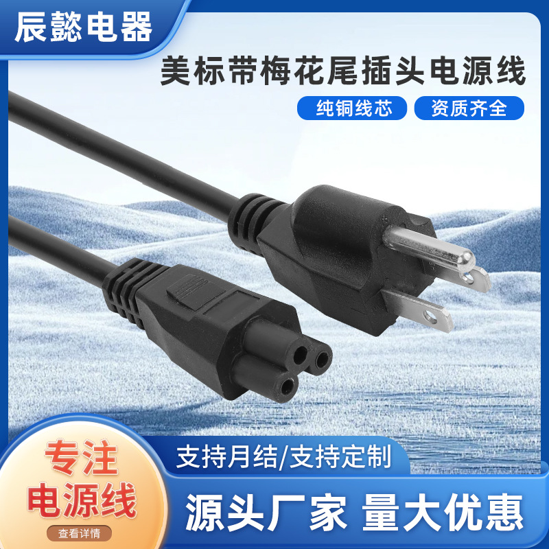 アメリカ標準梅花尾プラグ電源コード 3 芯アメリカンスタイル尾プラグコード黒 3 プラグ純銅電源コード