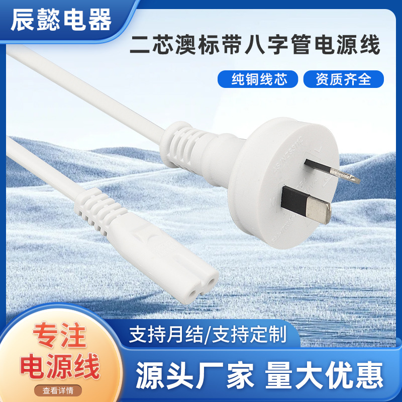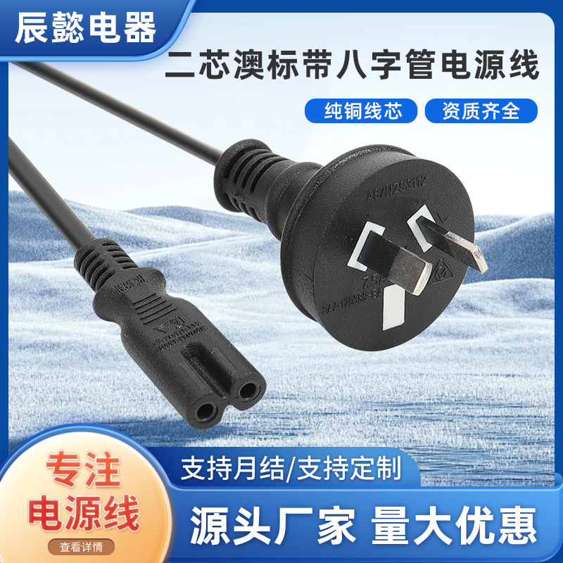 2芯オーストラリア規格8字型電源コード、2プラグオーストラリアプラグコード、ストレート8字型電源コード