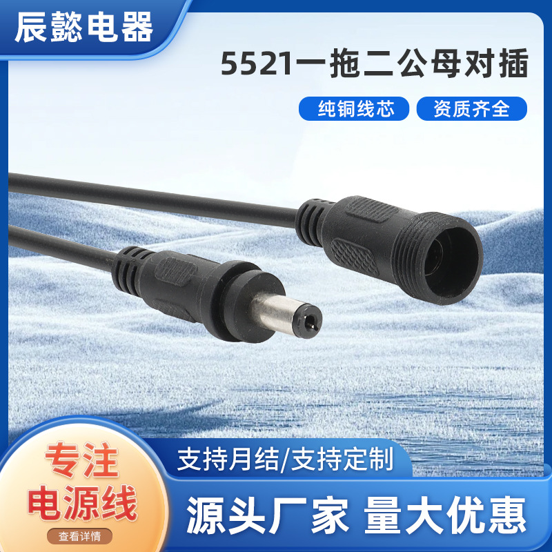 5521 プラグ 1 対 2 オスとメスのペア ブラック 2 コア 1 対 2 延長ケーブル カスタマイズをサポート