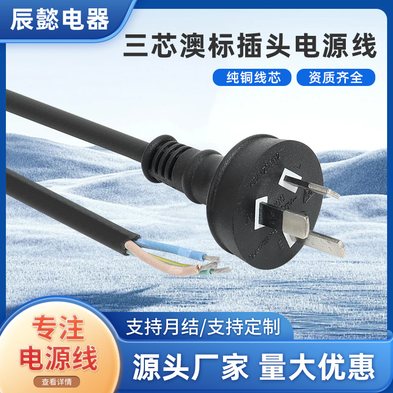 3芯オーストラリア規格プラグ電源コード 3芯オーストラリアプラグコード ストレートヘッド裸尾コード電源コード