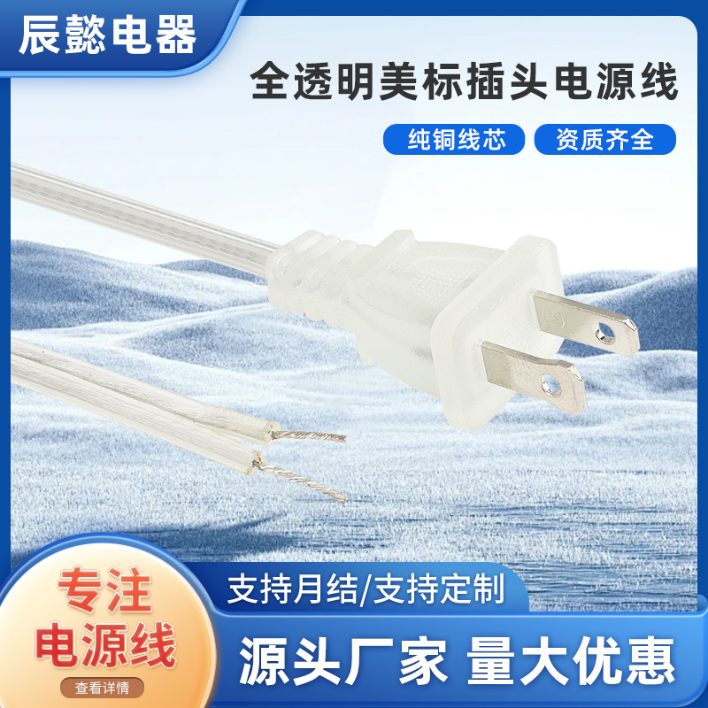 完全透明アメリカンプラグ電源コード大小アメリカンプラグコード透明裸尾コード