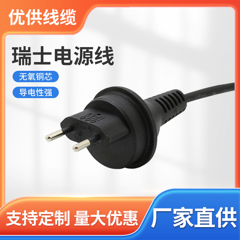 スイス規格プラグコード SEV認証 2芯プラグ電源コード 屋外用ゴムコード